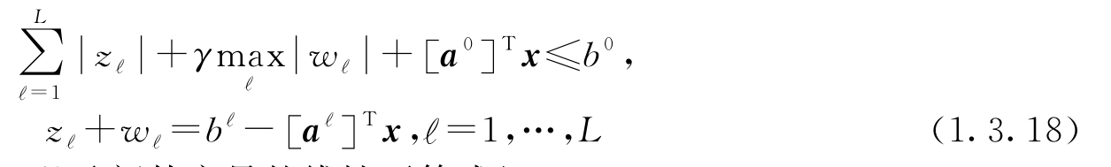 有了这个定义,很明显组(1.3.3)确实代表约束(1.3.2),更一般地说,是2 n +1个线性不等式的组: