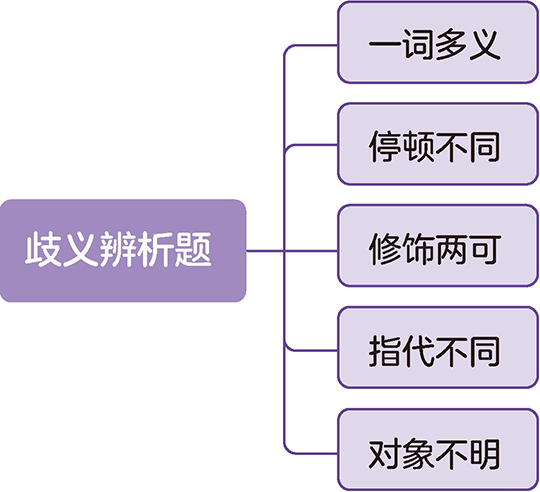 1.常见的歧义类型有一词多义、停顿不同、修饰两可、指代不明、对象不明等。