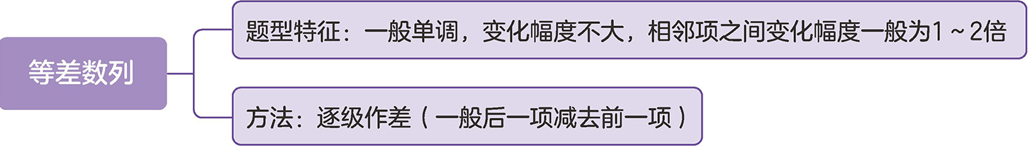 题型特征: 一般单调,变化幅度不大,相邻项之间变化幅度为1~2倍。