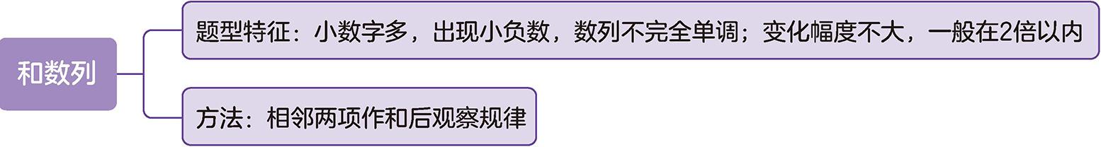 题型特征:小数字多,出现小负数,数列不完全单调;变化幅度不大,一般在2倍以内。