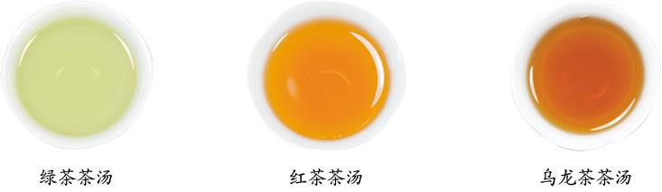 我国六大类茶在色泽上也有明显的区别。绿茶是不发酵茶,具有清汤绿叶的特点,汤色鲜灵清纯、莹亮清澈。红茶是全发酵茶,其干茶呈黑褐色,茶汤红艳明亮。红茶中的代表祁门红茶汤色红亮,云南“滇红”则汤色红浓。白茶属于微发酵茶,其干茶毫色银白,冲泡后,茶汤黄亮清澈,叶底嫩匀、叶片白色、叶脉翠绿。黄茶的特点是黄汤黄叶,汤色以黄汤明亮为好,暗黄或浊黄为次。乌龙茶属于半发酵茶,上品的乌龙茶干茶颜色或墨绿乌润或青绿油润,次等的乌龙茶干茶表面则呈乌褐色、褐色或橘红色;上品的乌龙茶茶汤呈金黄色或橙黄色,且清澈明亮,而质量次的乌龙茶汤色浑浊、红暗。黑茶属于后发酵茶,优质的黑茶茶汤明亮清澈,茶汤中没有悬浮的絮状物等杂质,茶叶叶底匀亮完整。