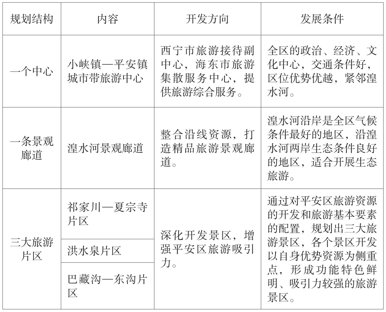 根据平安区所处的区位条件优势,在充分了解本区域旅游的开发及市场现状和未来旅游产品吸引力指向的前提下,结合青海省旅游市场开发的空间布局和发展目标出发,确定区域旅游市场的地域结构。