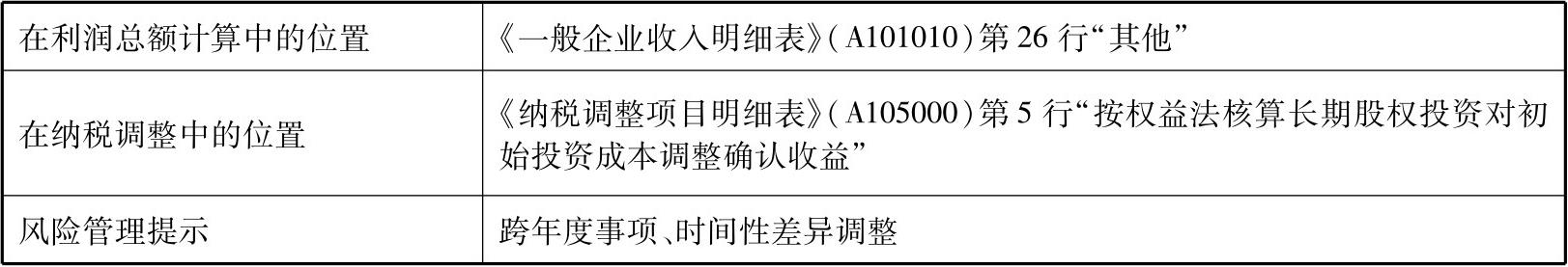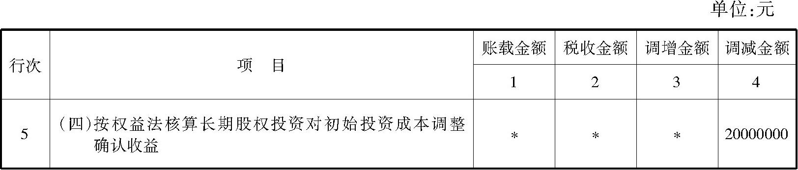 表4-2 按权益法核算长期股权投资对初始投资成本调整确认收益利润计算及纳税调整对照提示表