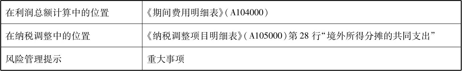 表4-22 境外所得分摊的共同支出利润计算及纳税调整对照提示表