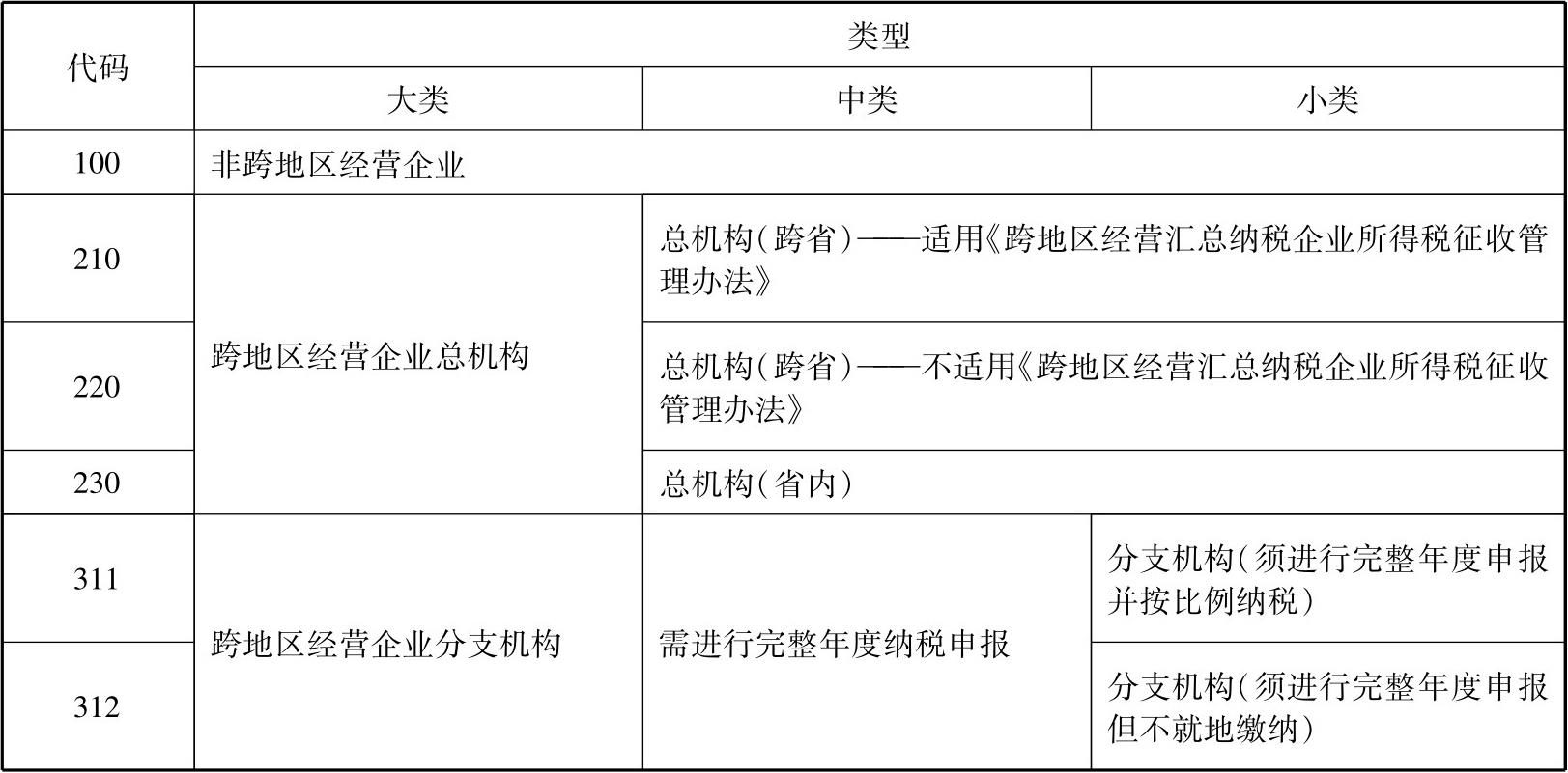 表1-1 跨地区经营企业类型代码表