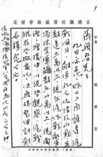 黄渡情形如何,此间何无所知,当加注意。款项只要可以寄去,必尽各种方法,遵命汇去,勿念。