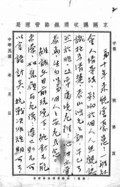 弟十年来饱尝忧患,一般社会人情事〔世〕故,影响于个人人生观,认识极为清楚。泰山鸿毛之训,早已了然于胸,故常处境危难,心神亦觉泰焉,望勿以弟个人之安危为念。