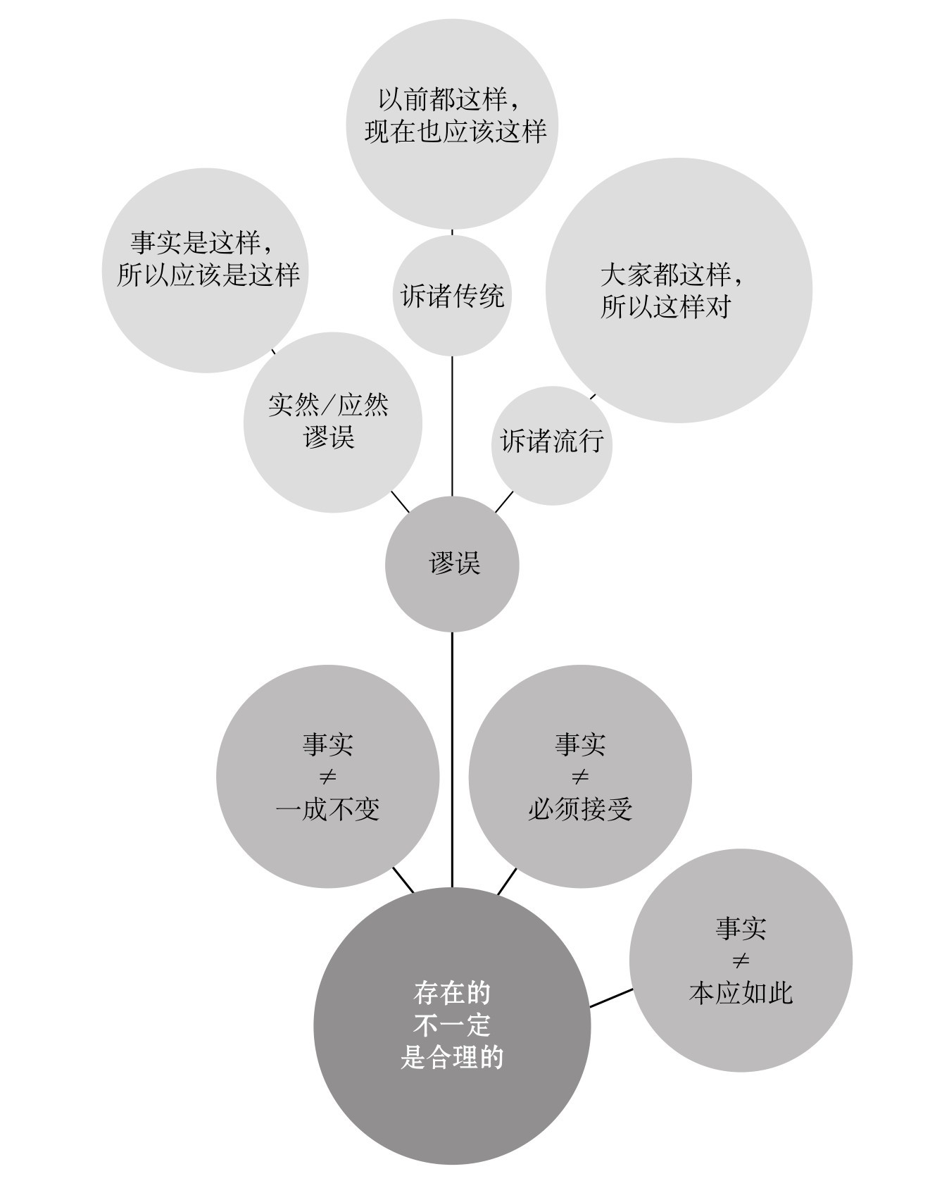 说到这儿,你可能会马上反驳我说:很多事情一直以来都保持同一运行模式,成为一种行为习惯甚至是社会规则,肯定有其道理。咦?一直以来这样,就是对的吗?行为习惯和社会规则都是讲道理的吗?你可能又陷入了诉诸流行/诉诸传统的谬误圈套: