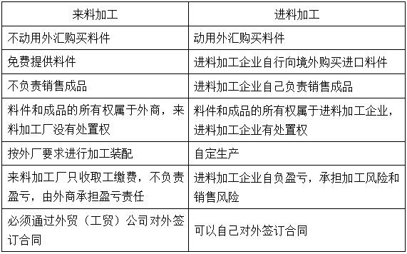 答: 来料加工与进料加工的区别如下表所示: