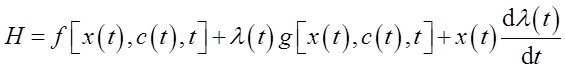 单一时间点上决策者不仅仅需要关注目标函数的现值,还需要考虑x(t)值的隐性变化。假设x(t)的现值为λ(t)x(t),它的即时变化率是: