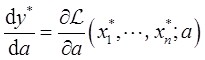 这说明对拉格朗日函数求偏导数并代入极值点数据,就是参数a的改变对最优值y的影响。在利用拉格朗日函数求解有约束条件下的问题和无约束条件的问题时,包络定理作用相同。
