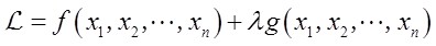 求解具有约束条件最大化问题的一种方法是拉格朗日乘数法。假设求解x 1 ,x 2 ,…,x n 的值,以便最大化下式:y=f(x 1 ,x 2 ,…,x n )。