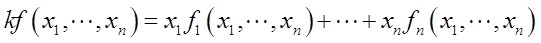 一个k次齐次可微函数的各个偏导数都是k-1次齐次的。例如,对齐次函数表达式的两边分别关于x 1 求偏导数,有:
