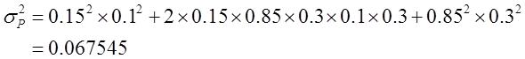 36 某一证券组合由15%的A股票和85%的B股票组成,AB的标准差分别是10%和30%,相关系数是0.3,请计算该组合的方差。若其他条件不变,将相关系数改为0.2,那么计算结果将发生什么变化?请解释。 [东北财大2006年研]