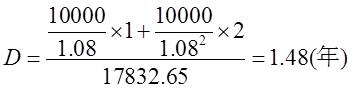 解: (1)债务现值为B=10000/(1+0.08)+10000/(1+0.08) 2 =17832.65(元)。