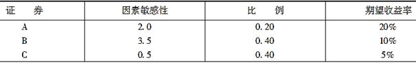 解: (1)A的持有比例增加0.2,欲创造一个套利组合,只要B、C组合的风险和A相同,设B的权数为x,则C为1-x,则有:3.5x+0.5×(1-x)=2.0,得x=0.5,所以B的权数为0.5,C的权数为0.5,所以B、C的比例各减少0.1,此时A、B、C组合与原组合风险相同。
