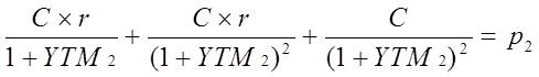 ②假定附息国债的到期收益率为YTM 2 ,债券价格为P 2 ,面值为C,票面利率为r,则:
