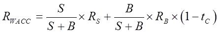 (2)加权平均资本成本R WACC =(B/V)×R B ×(1-t C )+(S/V)×R S