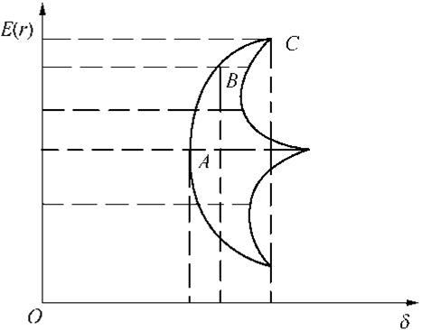 具体来讲,在所有可行的投资组合中,如果证券组合的特征由期望收益率和收益率方差来表示,则投资者需要在E-δ坐标系中的可行域中寻找最好的点,但不可能在可行域中找到一点被所有投资者都认为是最好的。按照投资者的共同偏好规则,可以排除那些被所有投资者都认为差的组合,排除后余下的这些组合就是有效证券组合。根据有效组合的定义,有效组合不止一个,描绘在可行域的图形中,如图粗实线部分它是可行域的上边界部分,也即有效边界ABC曲线段(如上图所示)。对于可行域内部及下边界上的任意可行组合,均可以在有效边界上找到一个有效组合比它好。但有效边界上的不同组合,比如B和C,按共同偏好规则不能区分好差。因而有效组合相当于有可能被某位投资者选作最佳组合的候选组合,不同投资者可以在有效边界上获得任一位置。作为一个理性投资者,且厌恶风险,则他不会选择有效边界以外的点。此外,A点是一个特殊的位置,它是上边界和下边界的交汇点,这一点所代表的组合在所有可行组合中方差最小,因而被称作最小方差组合。