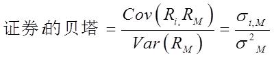 【解析】 证券的贝塔是证券收益率与市场组合收益率的标准协方差。对于证券i,贝塔的计算公式是: