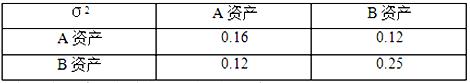 答: (1)由上表可得,A、B两资产的协方差为Cov(A,B)=0.12,A资产的方差为σ A 2 =0.16,B资产的方差为σ B 2 =0.25,因此,σ A =0.4,σ B =0.5。