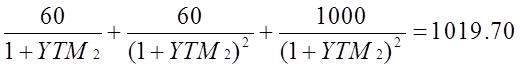 ②假定附息国债的到期收益率为YTM 2 ,债券价格为P 2 ,面值为C,票面利率为r,则: