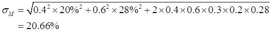 即: σ 2 =0.25×0.16+0.25×0.25+2×0.5×0.5×0.12=0.1625。