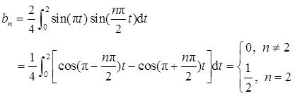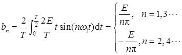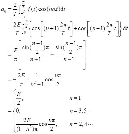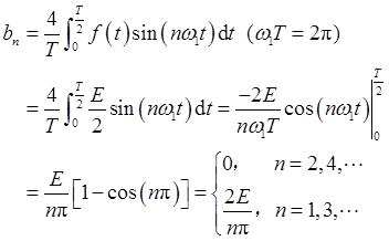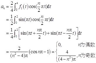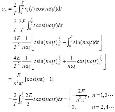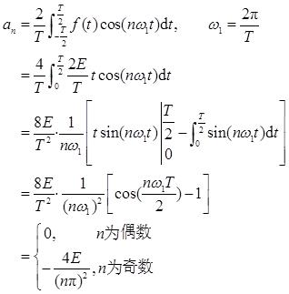 由图3-2-1可知,f(t)为奇函数且无直流分量,故有a 0 =a n =0。