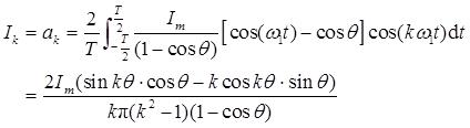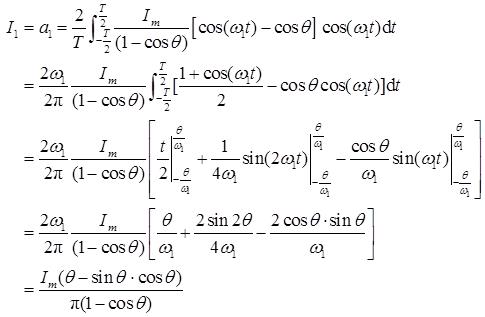 [提示:i(t)=I m [cos(ω 1 t)-cosθ]/(1-cosθ),ω 1 为i(t)的重复角频率。]