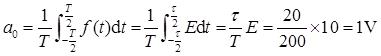 若重复频率f=5kHz,脉宽τ=20μs,幅度E=10V,求直流分量大小以及基波、二次和三次谐波的有效值。