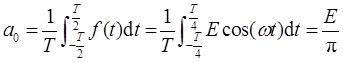 (10)当p(t)为周期矩形波,且T=π,τ=T/3=π/3,E=1时,其傅里叶系数为: