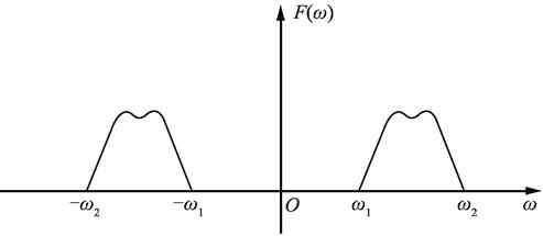 3-42 若连续信号f(t)的频谱F(ω)是带状的(ω 1 ~ω 2 ),如图3-2-50所示。