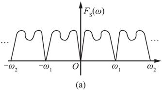 当ω 2 =2ω 1 =ω s 时,采用ω s =ω 2 的频率进行抽样,所得F s (ω)如图3-2-51(a)所示,可见频谱并未发生混叠。ω 2 =mB+kB,0≤k<1。