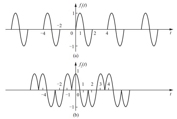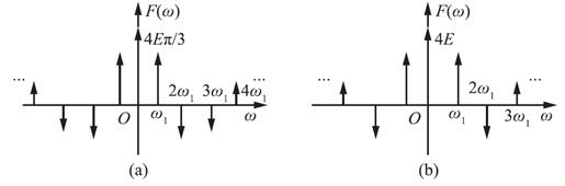 (2)图(b)中f(t)为奇函数,同时也是奇谐函数,故只含有基波和奇次谐波的正弦分量;