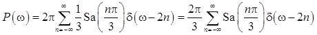 (2)当p(t)=cos(t/2)时,P(ω)=π[δ(ω+1/2)+δ(ω-1/2)],则