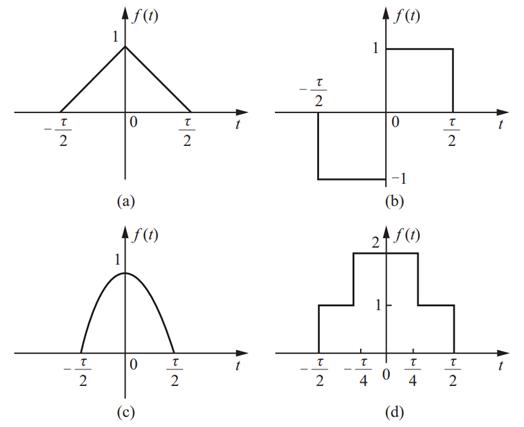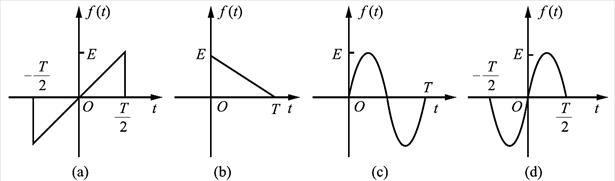 (4)图(d)中f(t)为奇函数,故只含有正弦分量;