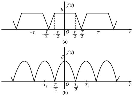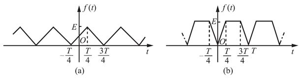 解: (1)图(a)中f(t)为偶函数,同时也是奇谐函数,故只含有基波和奇次谐波的余弦分量;