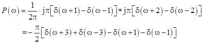 (3)当p(t)=cost时,P(ω)=π[δ(ω+1)+δ(ω-1)],则