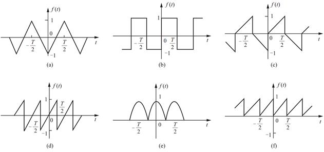 (6)图(f)中f(t)为偶谐函数,故只含直流和偶次谐波分量。