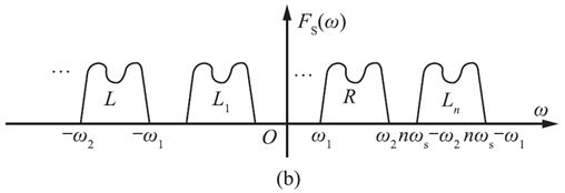 由图3-2-51(b)可知,要在两波形之间无混叠地插入L n ,则ω s 至少要为2B,这样波形L移至L n 时最大整数值n应满足: