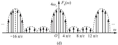 ,所以冲激抽样后信号的频谱图如图3-2-45(d)所示。