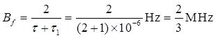 带宽: Δf 2 =1/τ=1/1.5μs=(2000/3)kHz。