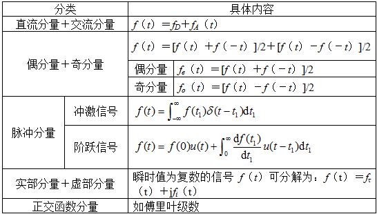 一个一般信号根据不同类型可分解为以下几种分量,具体见表1-1-6。