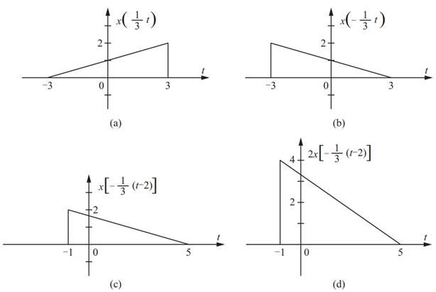 (3)利用信号的基本运算方法x(t)→x(-t)→x[-(t-2)]→u(-t)x(2-t)。