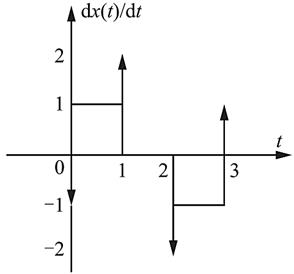 d[x(t)]/dt=[u(t)-u(t-1)]-[u(t-2)-u(t-3)]-δ(t)+2δ(t-1)-2δ(t-2)+δ(t-3)。