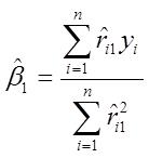 其中, r i1 是将x 1 对x 2 进行简单回归后得到的第i个OLS残差 r 1 ,再将y对 r 1 进行简单回归就能得到 β 1 ,因此 β 1 表示x 1 对y的净影响,即偏效应。