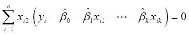 当k=2时, y = β 0 + β 1 x 1 + β 2 x 2 。一种表示 β 1 的方式为: