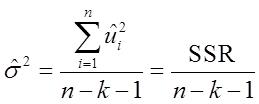 σ 2 的正平方根 σ 就是回归标准误或SER,即误差项的标准差的估计量。在给定的样本下,在方程中增加自变量时, σ 可能增加或减小。这取决于SSR与自由度下降的相对大小。