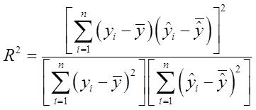 拟合优度R 2 是指因变量的样本变异中被OLS回归线所解释的部分,该值介于0和1之间,计算公式为:R 2 ≡SSE/SST=1-SSR/SST。R 2 等于实际值y i 与拟合值 y i 相关系数的平方。即: