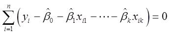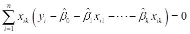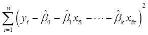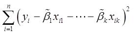 考虑包含k个自变量的样本回归函数(又称OLS回归线): y = β 0 + β 1 x 1 + β 2 x 2 + β 3 x 3 +…+ β k x k 。普通最小二乘法的思路就是选择k+1个OLS估计值,从而使残差平方和最小化,即: